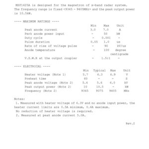 | Frequency | 9345 | 9375 | 9405 | MHz |