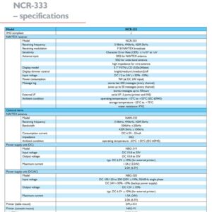Message saving function NCR-333 can store up to 200 message identification codes for 70 hours. Moreover, the stored message of each channel can be saved up to 50 messages permanently.